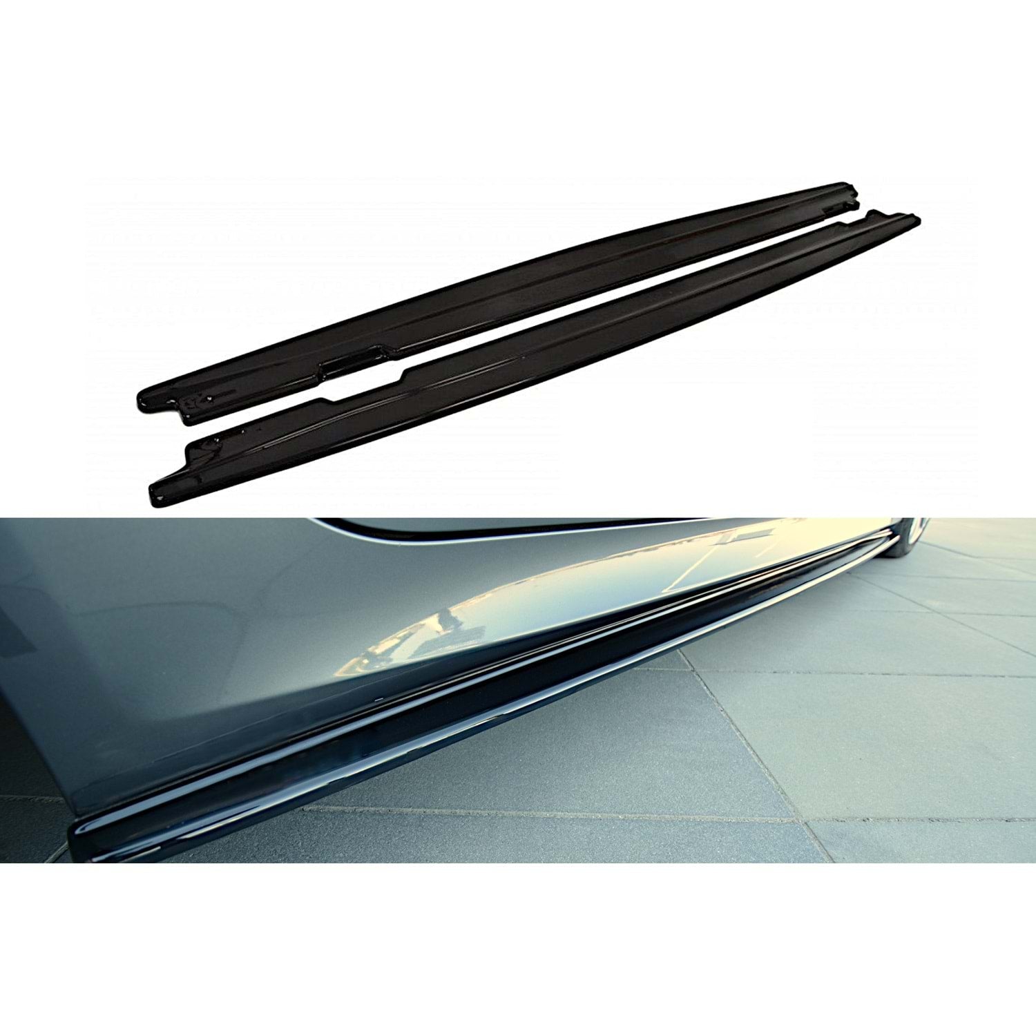 Добавки за прагове MAX стил за BMW E60 в цвят черен пиано лак. Дават по-нисък профил и по-спортна визия на автомобила, като визуално разширяват праговете и подчертават динамичната линия на купето.