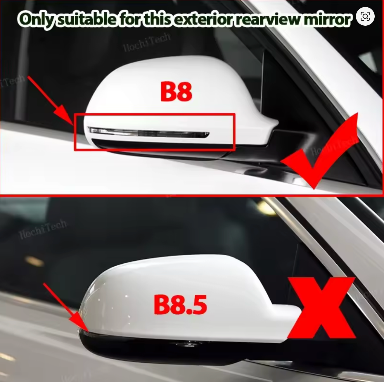 Carcase elegante pentru oglinzi, special concepute pentru Audi A4 B8 (2008–2014) , la care semnalizatorul este încorporat în carcasa oglinzii . Sunt fabricate din material de înaltă calitate, cu finisaj Black Piano Lacquer , care conferă mașinii un aspect luxos și sportiv.